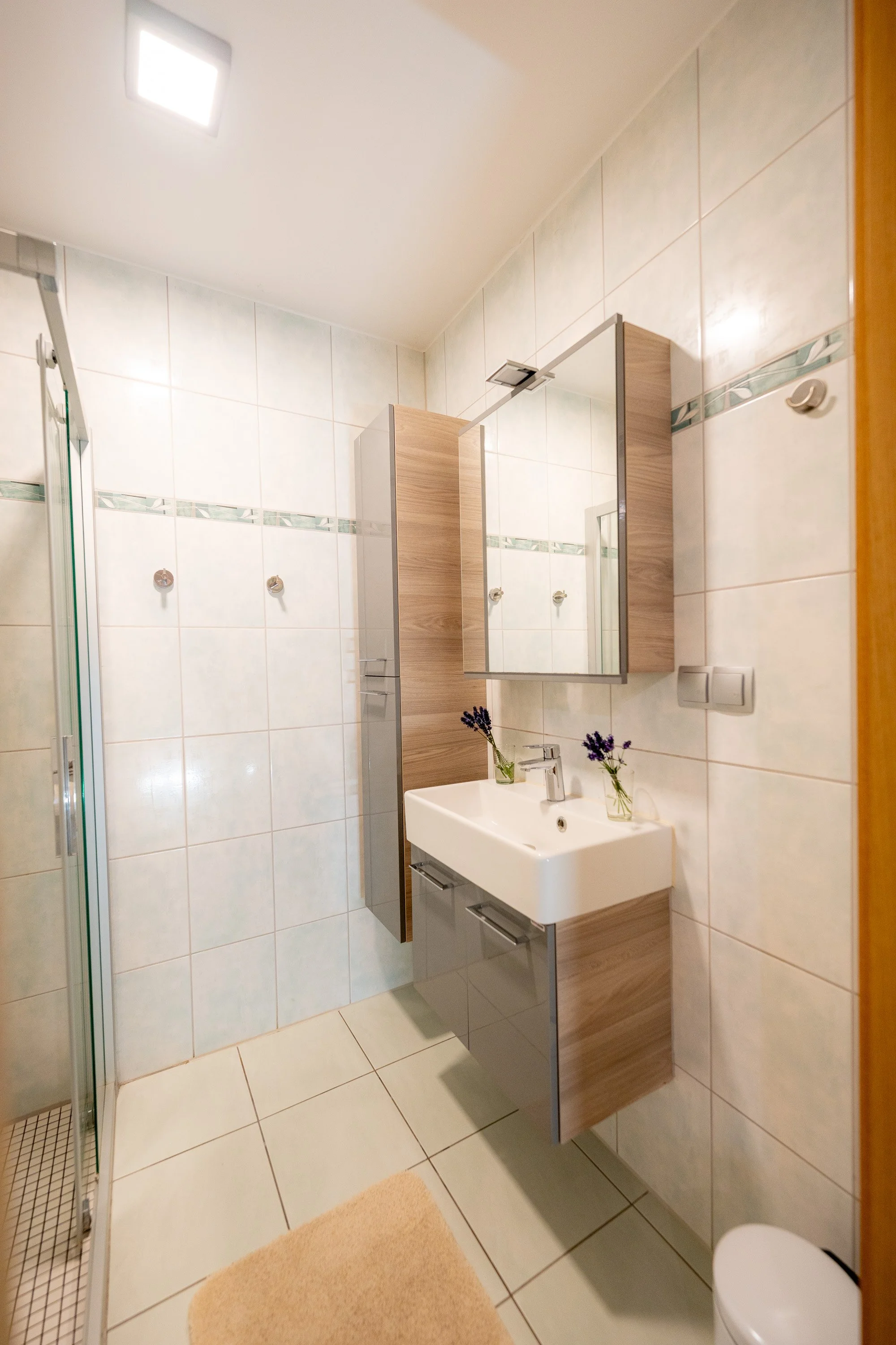 Dusche (ebenerdig oder mit Glasabtrennung)